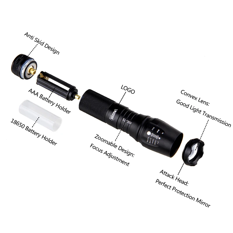 100% новый светодиодный регулируемый фокус XM-L T6 Изготовлен из высококачественного алюминиевого сплава 6061T, этот фонарик достаточно прочный и долговечный для длительного ежедневного использования Основание лампы: светодиод высокой мощности. Со сроком службы до 100000 часов или более, не нужно рассматривать замену колпачка на всю жизнь. Водонепроницаемый, но не помещайте его в воду долгое время Супер яркий, ослепляющий эффект Ободок для усиленной самозащиты 7 режимов: высокий/средний/низкий/Стробоскоп/sos/увеличение и уменьшение Зума Лампа: XM-L T6 светодиодный Максимальная мощность: 1600 люмен Питание: 1 х 26650 или 1x18650 3,6 v/3,7 v или 3X элементов питания типа AAA Размер (мм):160x40 (Безель)/28 (корпус) Вес нетто (г): 180 г Arts & Crafts co., ltd. Умное зарядное устройство может заряжать литий-ионные аккумуляторы CR123/26650 /18650/16340/14500, два за раз Светодиодная индикация для включения/зарядки/полной зарядки Вход: AC100v-240v 50-60 Гц (Международное зарядное устройство, может использоваться по всему миру) Выход AC/DC 4,2 V 1000mA Размеры: 110x60x33 мм (Д * Ш * В) Вес: 105 г Стандартный напряжение 3,7 V, Напряжение полного заряда и пустой аварийные условия 4,2 v & 2,5 v соответственно Особенно подходит для фонарика, электрических инструментов, электрических велосипедов, электромобилей Ёмкость: 5000 мА-ч Напряжение: 3,7 V Материал: литий-ионный аккумулятор Максимальное напряжение зарядки: 4,20 à 0,05 V Размер: 65 мм (В) x 26 мм (диаметр)