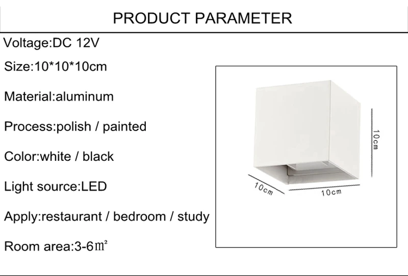 1 шт. 6 Вт светодиодный настенный светильник DC12V вход наружный настенный светильник для украшения дома настенный светильник для спальни прикроватный светильник алюминиевый корпус Настенный бра ванная комната осветительный прибор Спецификация Материал: корпус из алюминия Светильник Размеры: 10 см * 10 см Источник света: 2 шт. 3 Вт COB светодиодный чип, теплый белый, чистый белый. Из натурального белого цвета Цвет света: белый и черный Вход Напряжение: DC12V Как зафиксировать светодиодный настенный светильник 1. Установите металлическое основание на стену 2. Подключите null line и live line к домашней стене 3. Соедините кабель. 4. Установите светильник на металлическое основание. Пакет включает в себя: 1 шт. проектирующая настенная лампа