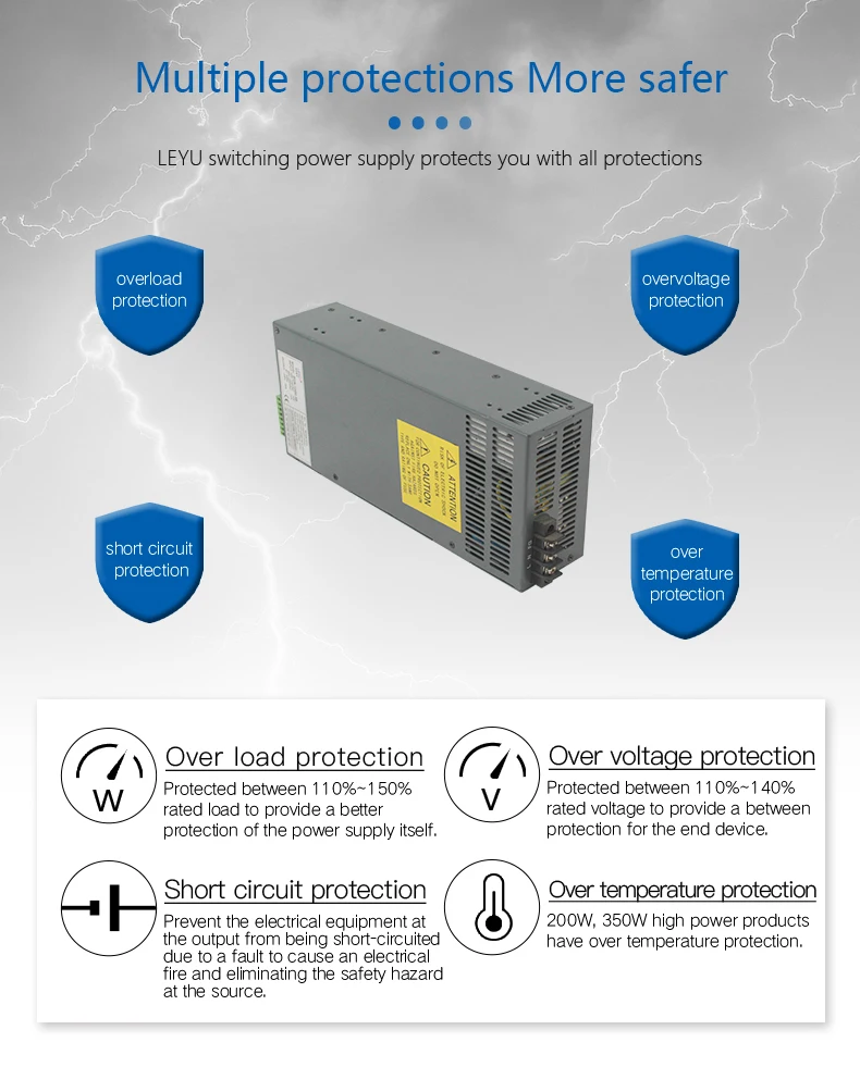 Защита: защита: ограничение тока, задержка выключения o/p напряжения, повторное включение для восстановления