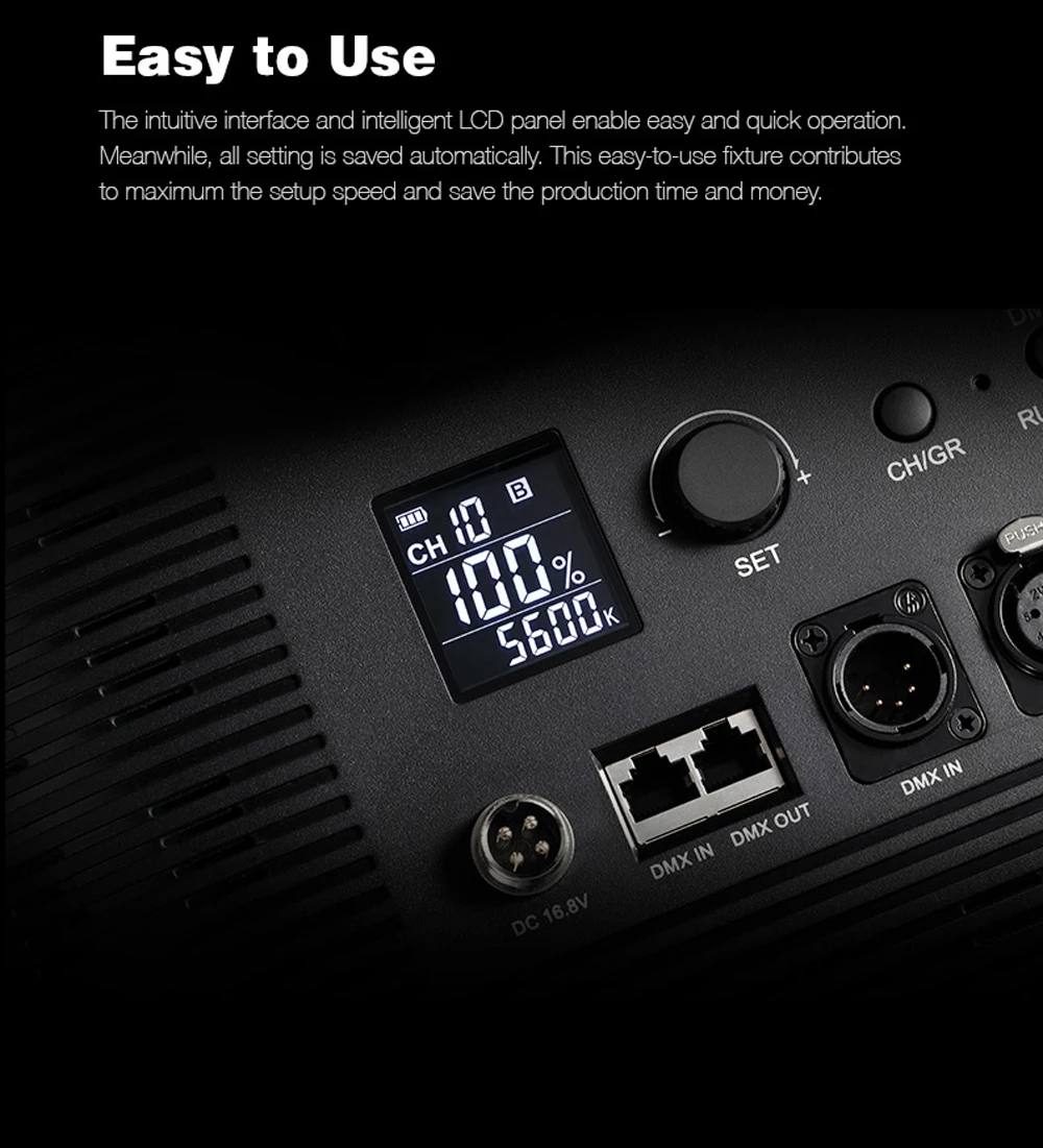 100% яркость (люкс): 4800 @ 1m/4200k;2200 @ 1m/3300k;2600 @ 1m/5600k