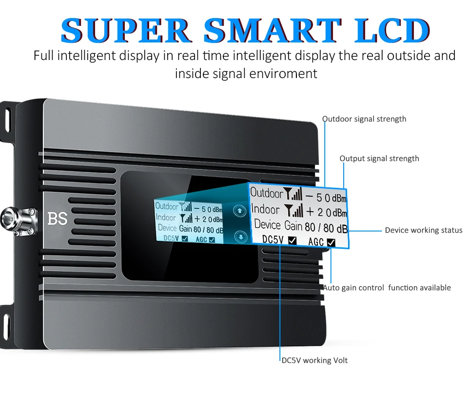 1. Принимает сигнал Мощная антенна достигает выхода, чтобы получить доступ к хорошему сигналу, и доставляет его к бустеру. 2. Повышает сигнал Усилитель принимает сигнал, усиливает его и служит релейным сигналом между вашим телефоном и близкой башней сотовой связи. 3. Сигнал передачи Ваши устройства получили повышенный прием сотовой связи, а звонки и данные подаются через усилитель обратно в сеть. Обратите внимание: пожалуйста, убедитесь, что место, где вы хотите установить,-это DCS 4G и убедитесь, что вы можете получить как правило 2 бар 4G "LTE" сигнал на открытом воздухе, прежде чем купить, В противном случае, этот продукт вам не поможет. Для уличного использования необходим хороший сигнал, чтобы улучшить сигнал в помещении.