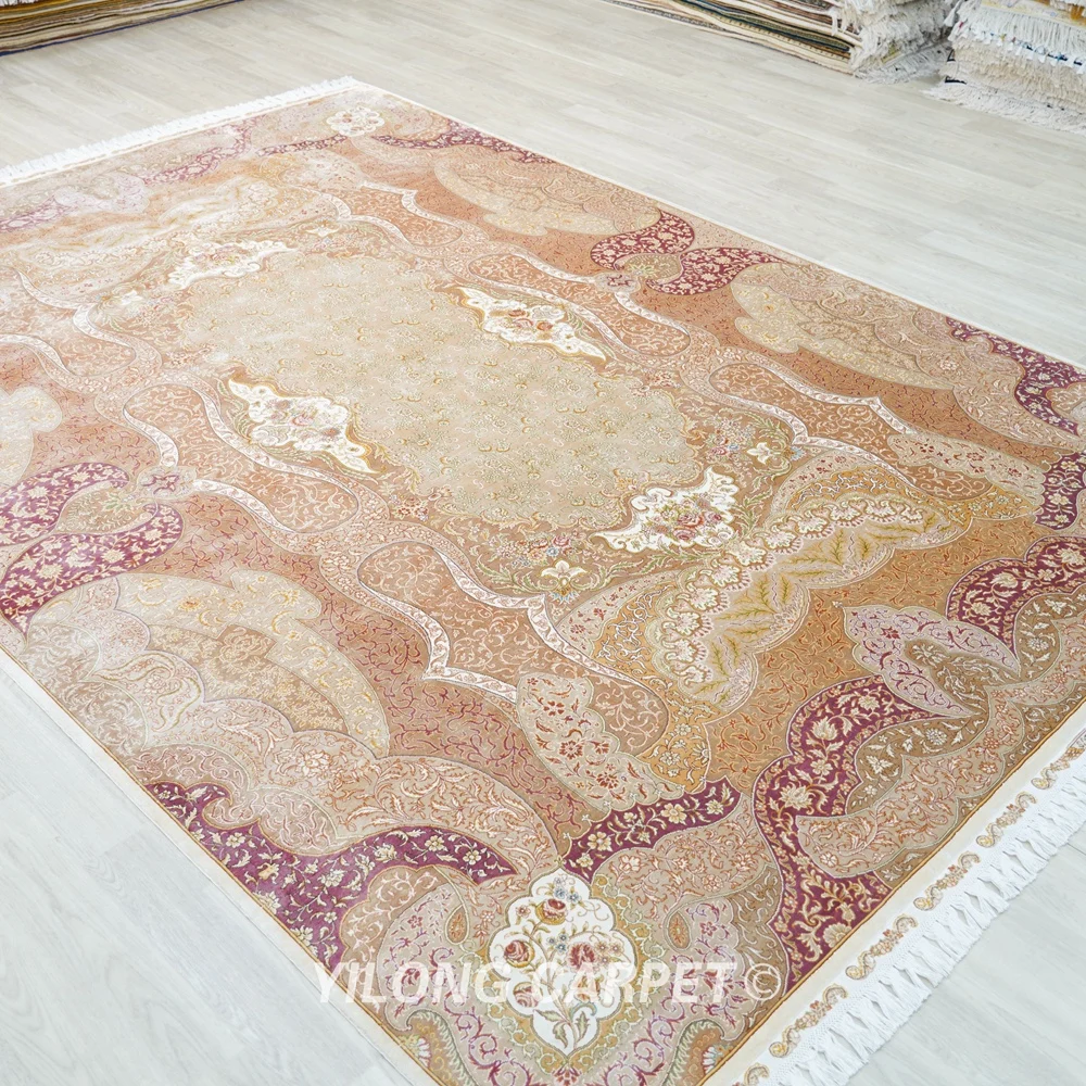 Этот шелковый ковер размером 226x314 см вдохновлен новым персидским дизайном. Весь шелковый ковер с цветочным узором придает новый вид интерьеру. Раскачивающиеся Изысканные цветы и листья создают большую элегантность. Готовы для вашего дома/офиса, а также для художественной коллекции или ценного подарка для семьи, друзей или других уважаемых. Все изображения коврика сделаны нами, без какого-либо изменения цвета. И фактический ковер намного красивее, чем на картинке.
