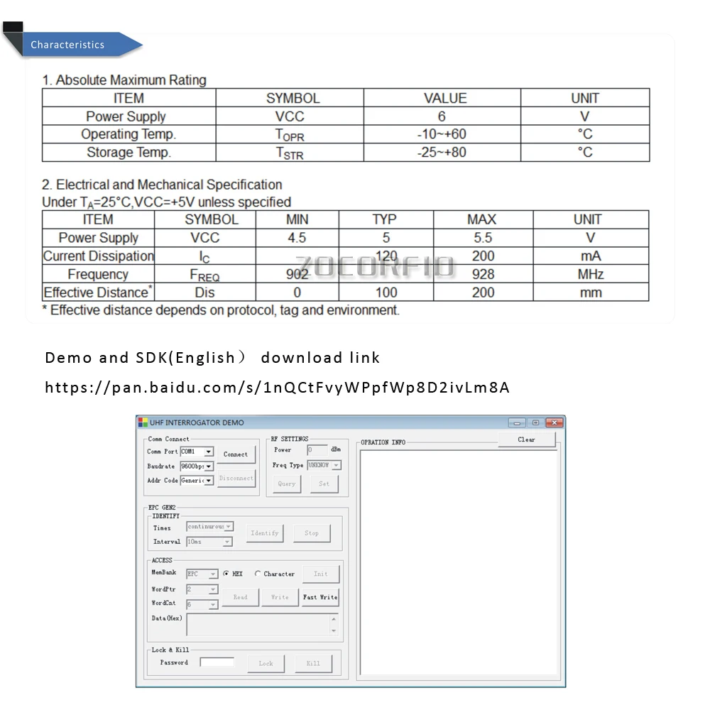 Мы предлагаем полный английский SDK, демонстрационное программное обеспечение, руководство пользователя, исходный код. Он может помочь вам в разработке программного обеспечения. KL9005s-высокопроизводительный многопротокол UHF RFID-ридер. Он разработан на основе полностью собственной интеллектуальной собственности. На основе эффективного алгоритма обработки цифровых сигналов, он поддерживает быструю работу чтения/записи тегов с высокой скоростью идентификации. Он может быть широко применен во многих системах применения RFID, таких как логистика, контроль доступа, система посещаемости, система контроля процесса защиты от подделок и промышленного производства Особенности: Модель: KL9005S Самостоятельная интеллектуальная собственность; Поддержка ISO18000-6B, ISO18000-6C(EPC C1G2) тег Протокола; Рабочая частота: 902-928 МГц FHSS или фиксированная Частотная передача; Выходная мощность RF до 10 дБм (регулируется); Внешний источник питания не требуется; Встроенная антенна с эффектом расстояния до 200 мм *; Sup порт USB1.1 интерфейс с VSP (виртуальным последовательным портом) или режимом HID; Тонкий контуром; Предоставление SDK и демонстрационного программного обеспечения для содействия дальнейшей разработке. Эффективное расстояние зависит от протокола, ярлыка и окружающей среды.