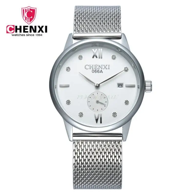 CHENXI Брендовые мужские деловые модные кварцевые часы, мужские декоративные высококачественные часы из нержавеющей стали с сетчатым ремешком, календарь, часы PENGNATATE