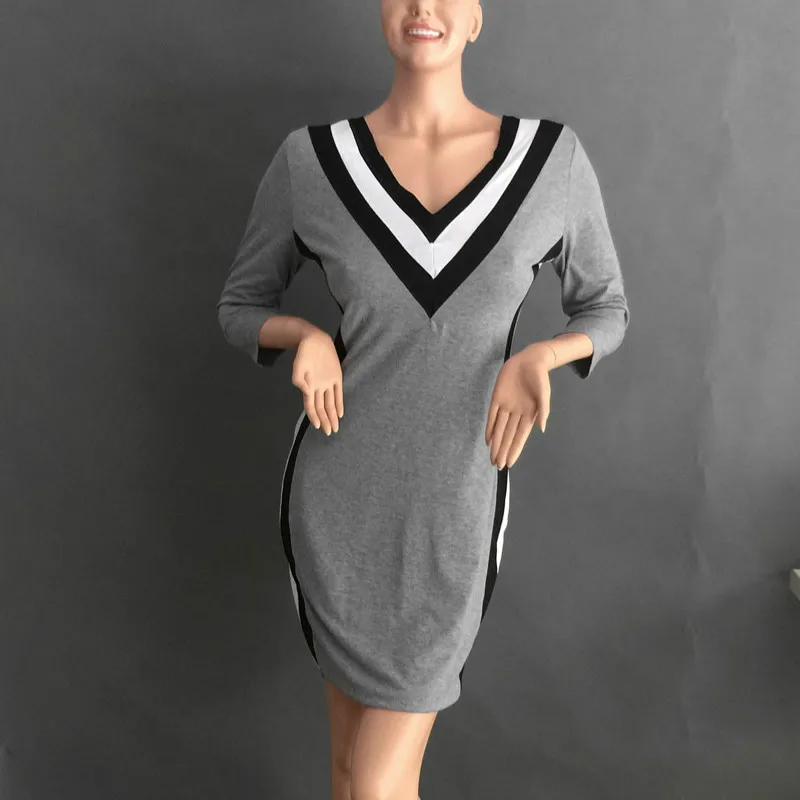 новых осенью и зимой дамы V-образным Вырезом сексуальный плотный мини повседневная лоскутная черный серый платье женщины 80% хлопок одежда DCD-15338 US $15.93 /шт