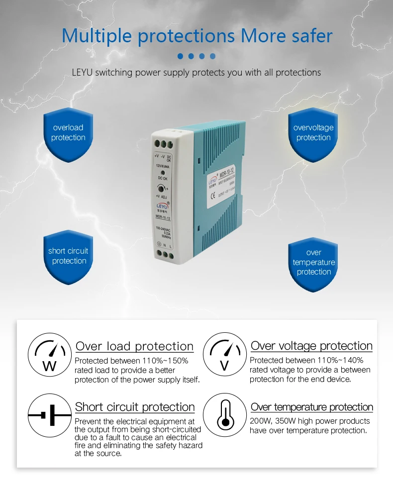 Тип защиты: выключение o/p напряжения, повторное включение для восстановления