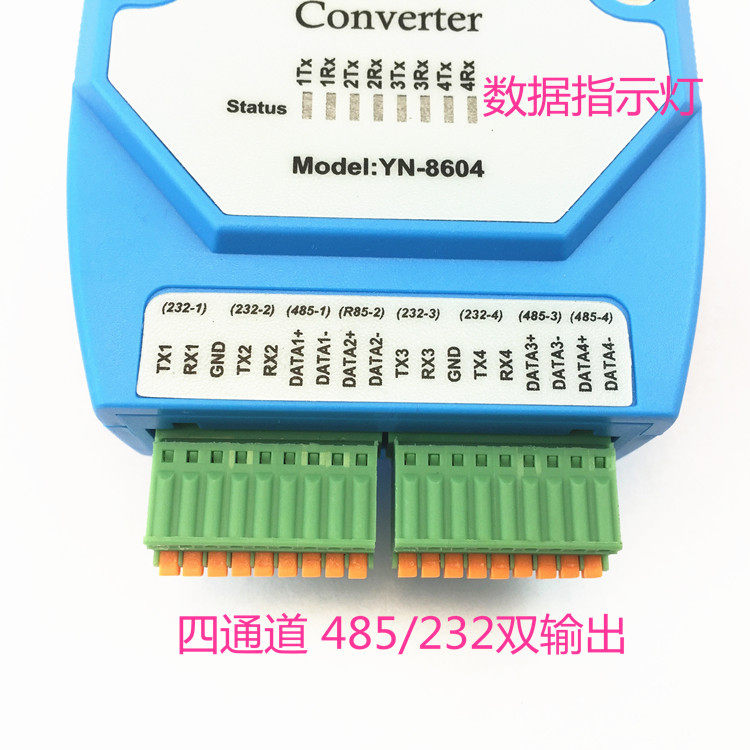 При общении индикатор состояния освещает сцинтилляцию, отправку и получение данных можно делить на различные индикаторы. Каждый канал может получать сигналы 485 или 232, 485 и 232 не должны использоваться одновременно. 485 сигнал, соединяющий данные + данные-две линии 232 сигнал подключения TX RX GND три корневые линии