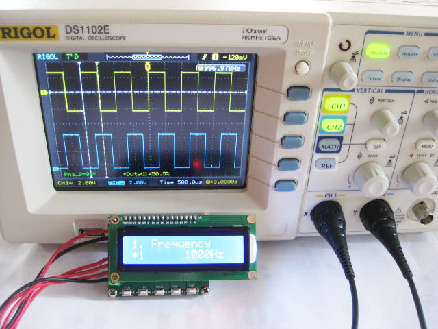 1. Краткое описание:HM340-это небольшой генератор сигналов, самый высокий может производить частоту 100 кГц, рабочий цикл, фазовый Регулируемый импульсный сигнал; производит контрольный сигнал рулевого механизма; измеряет частоту;Модуль прост в использовании, а входные Частотные данные вводятся при помощи ключа, а Выходная частота обновляется немедленно.Два. Применение продукта:Генератор сигналов;Калибровка прибора;Управление двигателем прямого тока;Измерение частоты;Три. Таблица технических параметров:ПРИМЕЧАНИЯ по параметрам проекта серийного номера1 Диапазон импульсного сигнала 1 ~ 100000 Гц импульсный сигнал2. Коэффициент мощности импульса 0-100%Разница между 3 фазами импульса диапазон разницы 0 ~ 360 градусов и сигнал второго пути4 амплитуда импульса 5 в постоянного тока максимальная амплитуда 5.0Vp (амплитуда выхода постоянна)5 Диапазон измерения частоты 1 ~ 1000 K Гц6 разрешение измерения частоты 1 Гц7 диапазон частоты и напряжения от 0,7 до 10 В постоянного тока является прямым соединением8 частота пилотного сигнала 100 ГцШирина импульса сигнала 9 руля 500 ~ 2500 us10 рабочее напряжение 7 ~ 12 В постоянного тока11 рабочий ток <50 мА13 размер 57*45*20 мм Длина X Ширина X высотаЧетыре, описание интерфейса и соответствующие операцииИнтерфейс P4 (источник питания)VDD: источник питания (7 ~ 12 В)GND: блок питания отрицательного полюсаИнтерфейс P3Плавник: Измерьте Частотный вход.P2: выход второго импульсного сигнала.P1: Выход первого импульсного сигнала.GND: источник питания отрицательный.Пять, описание ключаFUN: (Выберите местоположение набора данных) или (долгое время, сохраняя функцию параметра set).Вверх: на странице.Вниз: Следующая страница.Добавить: добавляется к клавише.SUB: является самостоятельным уменьшением.Шесть. Описание интерфейса и работы:6,1. Установите частоту импульсного сигналаДисплей интерфейса Шрифт:Первая линия «1. Частота»Вторая линия "* 1 1000 Гц"Ключевая операция:FUN: функциональная клавиша; (выберите рабочее положение настройки данных) или (в соответствии с функцией сохранения и настройки параметров)Добавить: самодобавляемый ключ;SUB: саморегулирующийся ключ;6,2. Настройка коэффициента мощности импульсного сигналаДисплей интерфейса Шрифт:Первая линия "2. Рабочий цикл"Вторая линия "* 0,1 50%"Ключевая операция:FUN: функциональная клавиша; (выберите рабочее положение настройки данных) или (в соответствии с функцией сохранения и настройки параметров)Добавить: самодобавляемый ключ;SUB: саморегулирующийся ключ;6,3. Установите фазу разницы между первым и вторым импульсными сигналами (первый способ для справки)Дисплей интерфейса Шрифт:Первая линия "3. Фаза"Вторая линия "10C"Ключевая операция:FUN: функциональная клавиша; (выберите рабочее положение настройки данных) или (в соответствии с функцией сохранения и настройки параметров)Добавить: самодобавляемый ключ;SUB: саморегулирующийся ключ;6,4. Импульсный сигнал выходного руляДисплей интерфейса Шрифт:Первая линия "4. Управление сервоприводом"Вторая линия "* 1 500 US"Ключевая операция:FUN: функциональная клавиша; (выберите рабочее положение настройки данных) или (в соответствии с функцией сохранения и настройки параметров)Добавить: самодобавляемый ключ;SUB: саморегулирующийся ключ;6,5. Частота измеренияДисплей интерфейса Шрифт:Первая линия "5. Частота 1 МГц"Вторая линия «OFF 0Hz»Ключевая операция:(Старт/стоп) измерение частотных