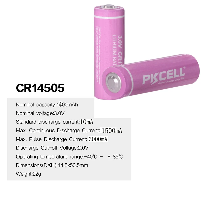 Тип батареи:Аккумулятор 14505 CR145051400 мАч 3 вLiMnO2АккумуляторЛитиевая батарея
