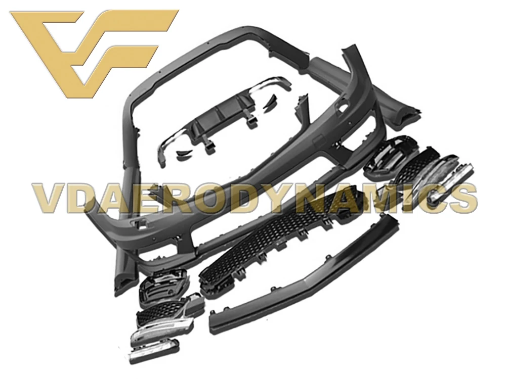 В комплект входит: передний бампер, задний бампер, пара боковых юбок, Пара крыльев