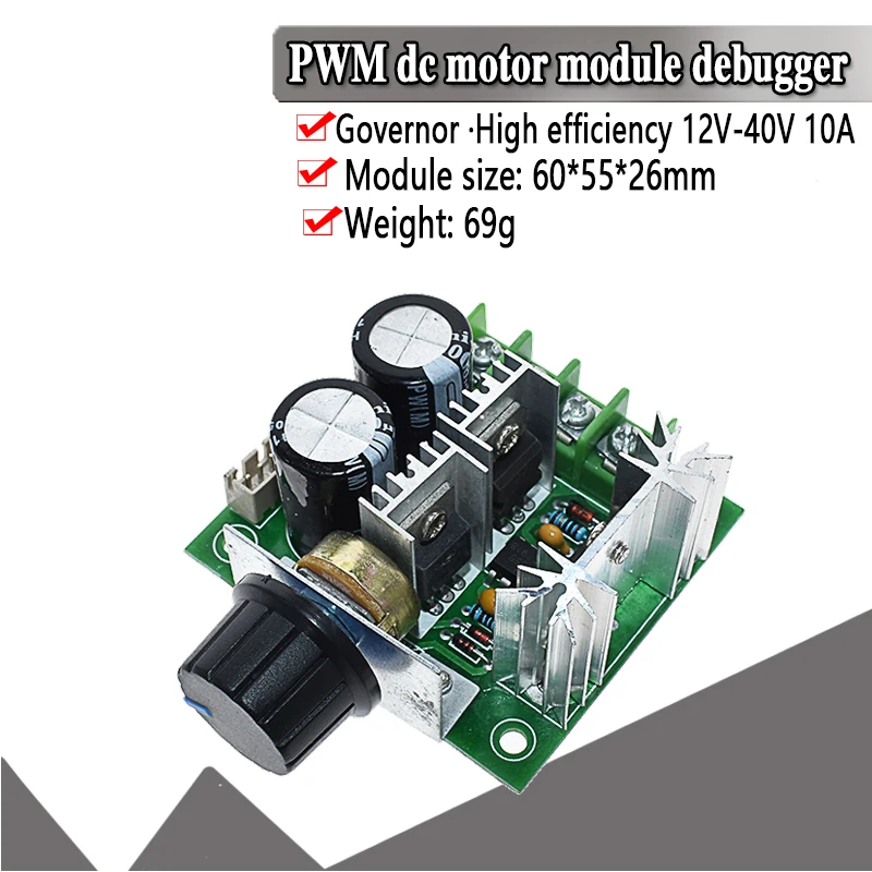 CCMHC регулятор скорости двигателя постоянного тока контролирует скорость двигателя постоянного тока путем регулировки ширины импульса (ШИМ). Диапазон входного напряжения составляет 12V-40VDC. Максимальная выходная мощность: 400 Вт (мощность 12 в * 10 А = 120 Вт. .. Максимальная мощность 24 В 200 Вт) Частота ШИМ-21 кГц; Диапазон регулируемой скорости составляет 5%-100%. Включите предохранитель 10A и с функцией защиты обратного подключения источника питания. Подходит для двигателя постоянного тока (или нагрузки постоянного тока) в пределах 8А, пиковый ток 10А. Размер товара: 2,36*2,17*1,1 дюйм (ов); Чистая Вес: 2,4 унций.