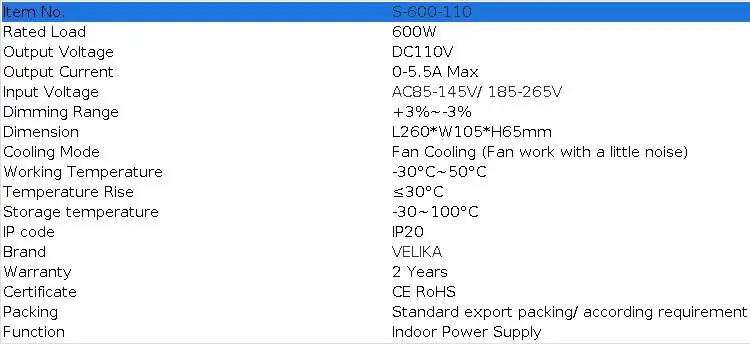 DC110V 5.5A 600W Светодиодный источник питания (1 шт.)