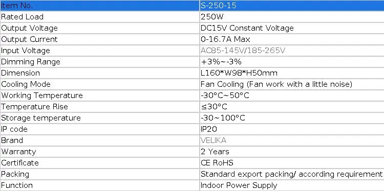 DC15V 16.7A 250W Светодиодный источник питания (1 шт.)