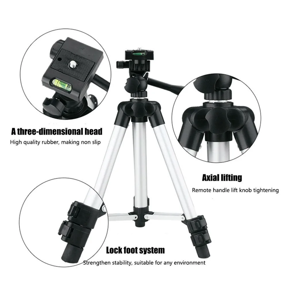 Алюминиевый Трипод для камеры 50 ", универсальный держатель для смартфона, беспроводной пульт дистанционного управления Bluetooth, спуск затвора камеры Описание продукта: Удобнее Штатив 50 дюймов -Нескользящие ножки и индикатор уровня пузыря -Он имеет регулируемый центральный шест и поставляется с водостойкой переноски чехол. Мини-штатив для воздушных шаров является легким и мобильном телефоне с его алюминиевый сплав ноги и 3-сторонний выход с полукруглой потайной головкой. Универсальным креплением для смартфона -Удобное крепление -Мягкое крепление, чтобы не повредить смартфон -Регулируемый адаптер для телефона подходит для всех телефонов шириной от 55 мм до 85 мм. Беспроводной с дистанционным управлением по Bluetooth -Беспроводной пульт дистанционного управления Bluetooth работает для большинства Androids и смартфонов Apple iPhone -Для загрузки приложения не требуется -С Bluetooth-подключением вы можете начать использовать беспроводной пульт дистанционного управления -Легкий и легко хранить в кармане или в качестве брелка -Фотографии могут быть сделаны до 30 футов Посылка включает в себя: -Штатив 50 дюймов-1 шт. -1 держатель для телефона -1 х пульт дистанционного спуска затвора Bluetooth Примечание: аккумулятор в комплект не входит пульт дистанционного управления