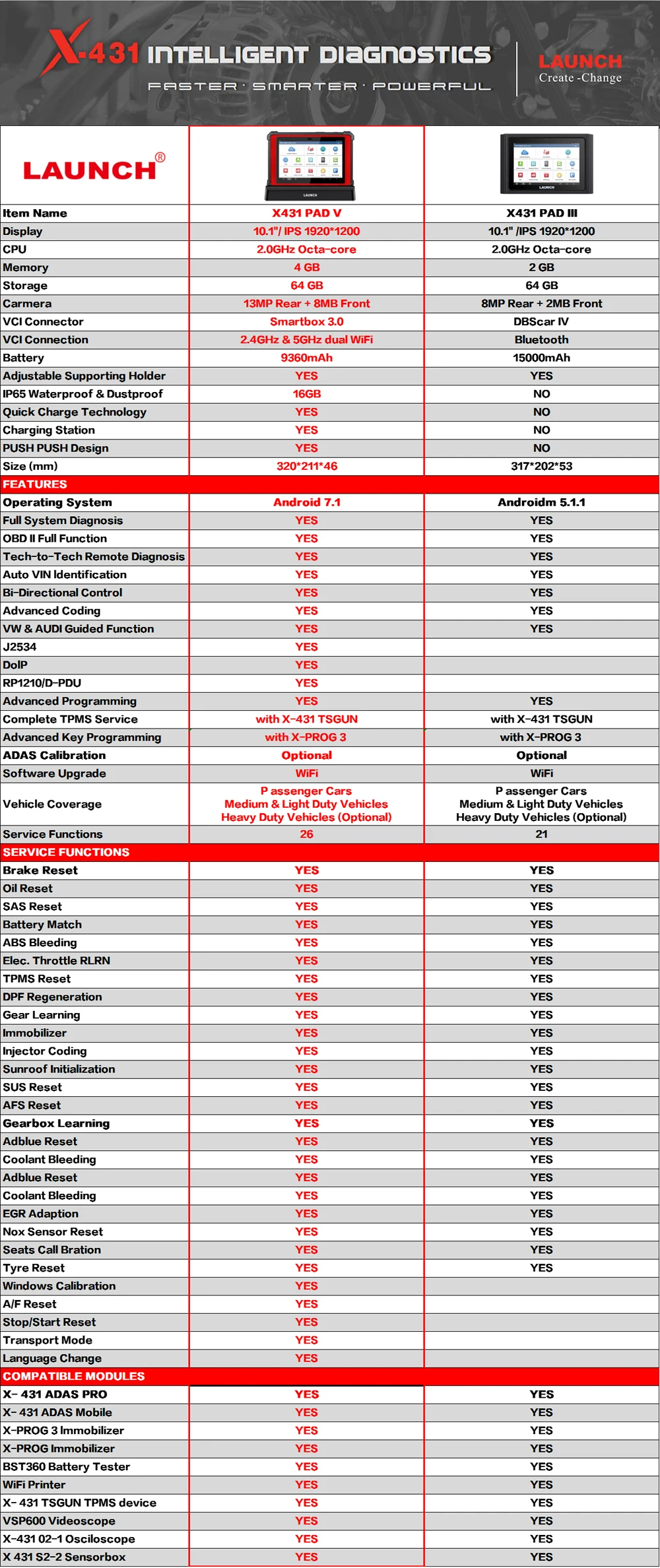 LAUNCH X431 PAD V Compare with X431 PAD III