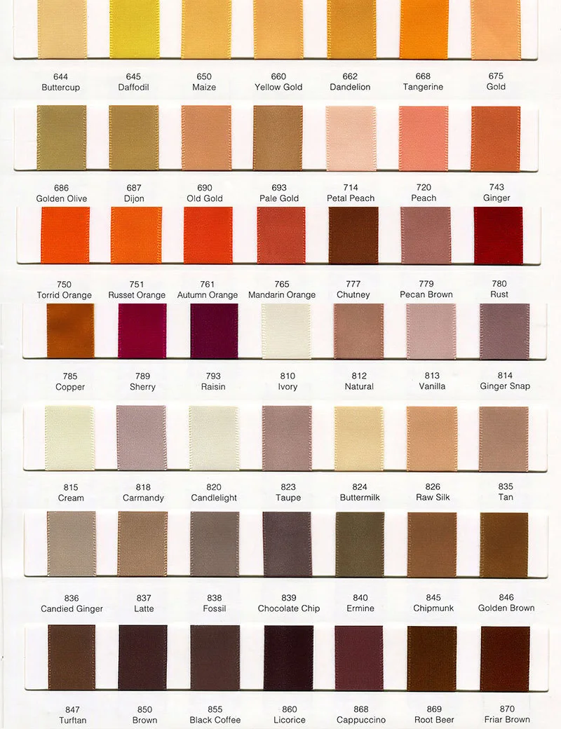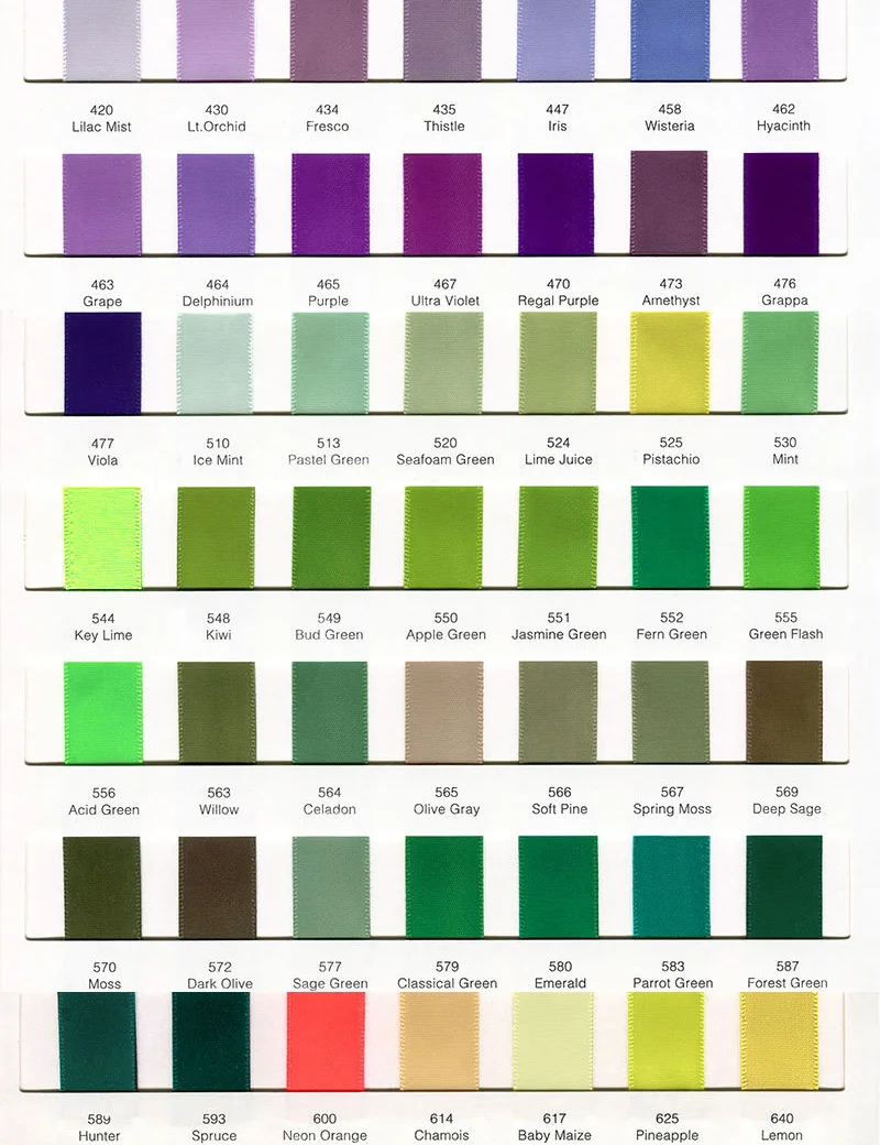 Эти ленты доступны в 196 цветах, но выбор цвета коробки ограничен и не может перечислить все цвета по одному. Таким образом, мы просто разместили цветовую таблицу на веб-сайте. Когда вы размещаете заказ, пожалуйста, сначала выберите размер, а затем поместите Номер цветового кода в коробку сообщений, или вы можете отправить нам сообщение онлайн-чатом режиме. Спасибо.