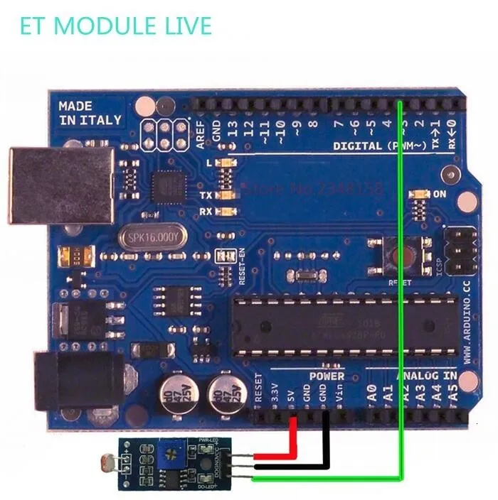 2, модуль в среде интенсивности света, короткий от порога настройки, выход высокого уровня заканчиваются, когда интенсивность света окружающей среды больше, чем установленный порог, выход делает низкий уровень;