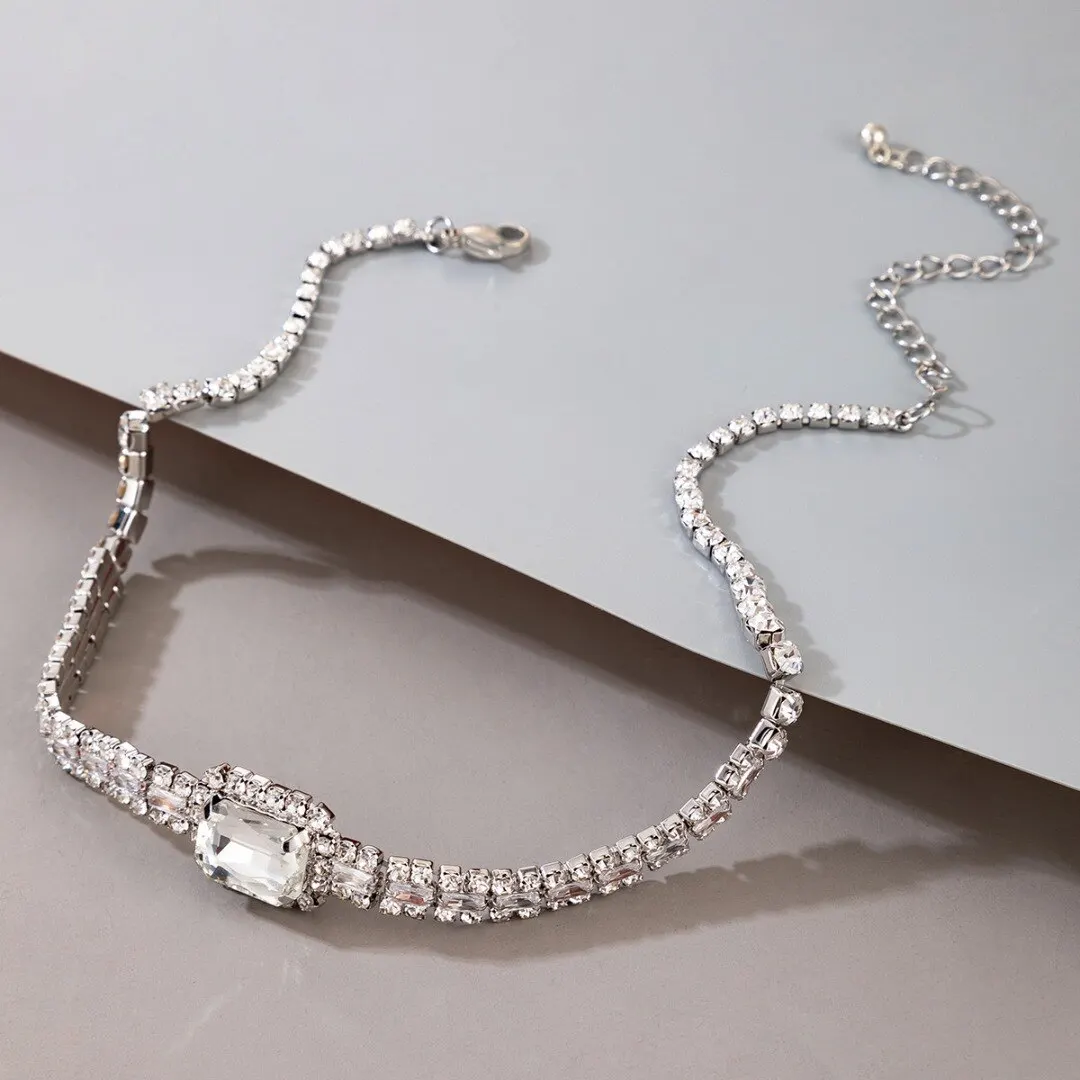 Роскошное квадратное Хрустальное колье для женщин, свадебное ювелирное изделие, изысканное серебряное геометрическое ожерелье, банкетное колье-чокерUS $4,41