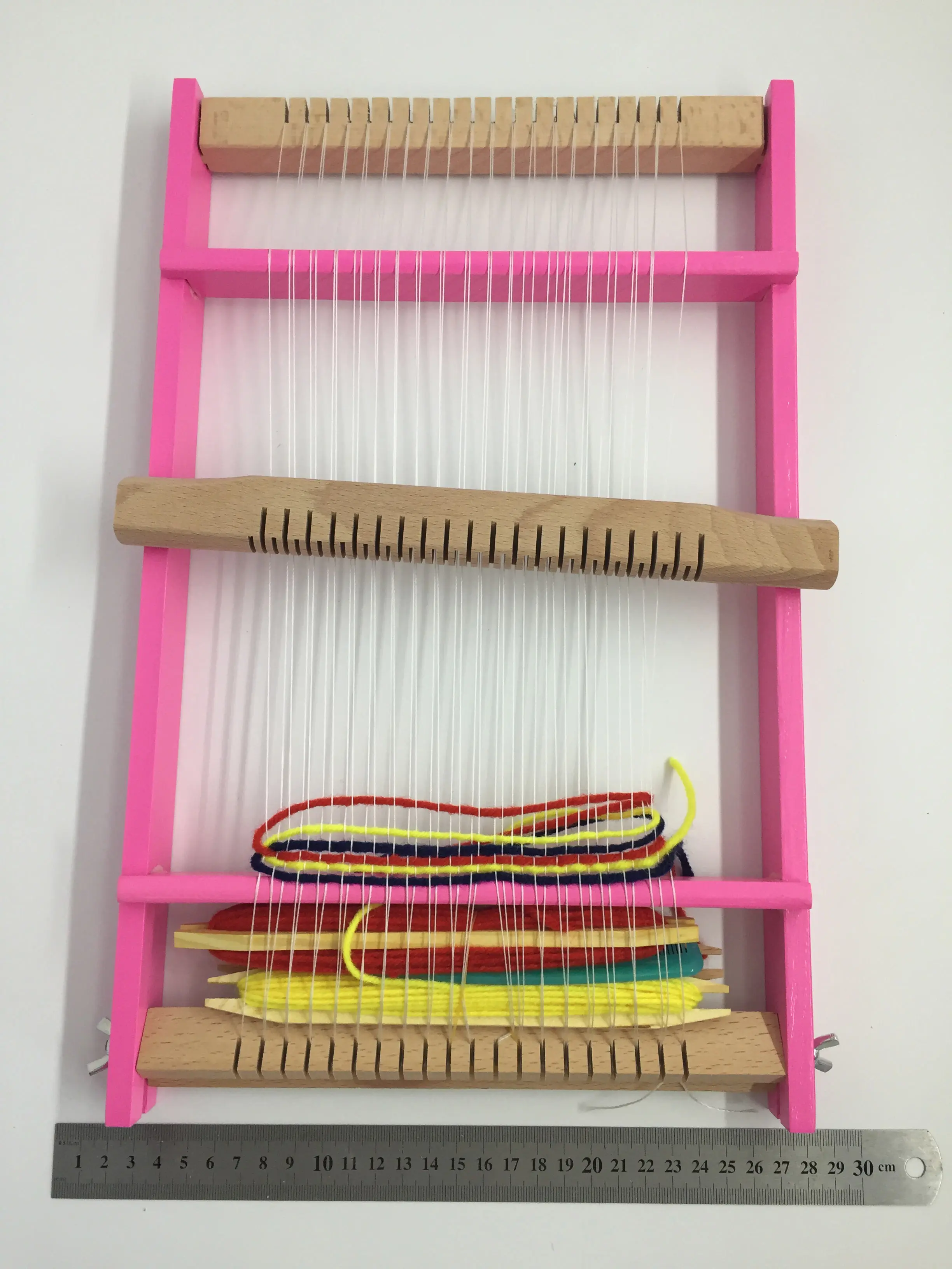 Размер: 40*25*3,5 см 1 комплект включает: Расческа, челнок, катушка, нить (случайный цвет и длина) и вязальная машина. Для милого ребенка для упражнений DIY.