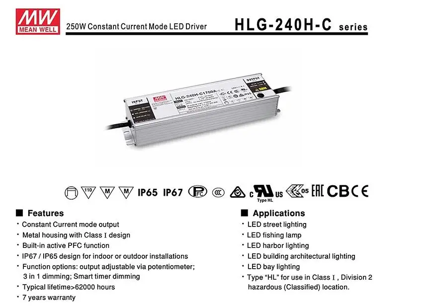Оригинальный тайваньский светодиодный драйвер Meanwell hlg-240h-c1400b 250 Вт с регулируемой яркостью питания IP65 для 5 шт. cree cxb3590/clu048 1212C4