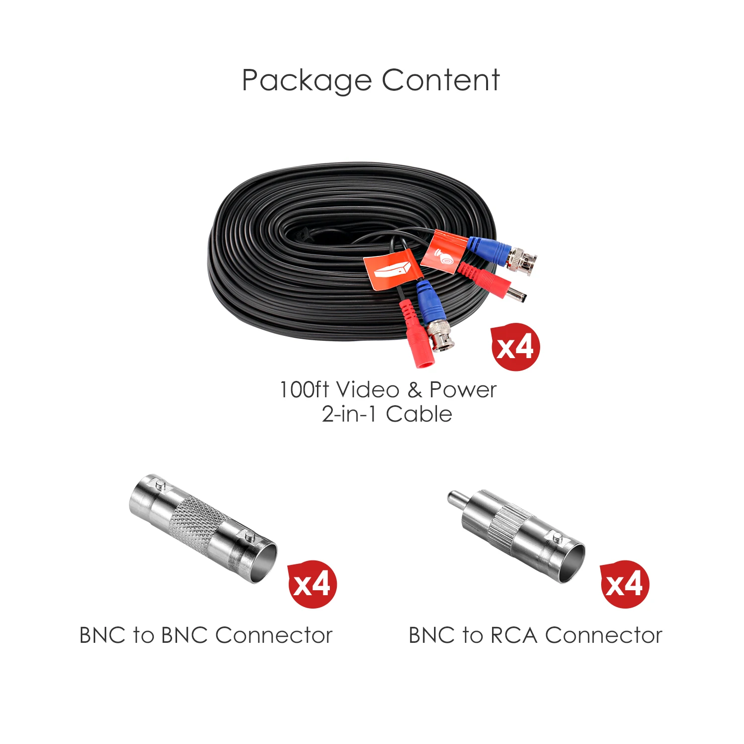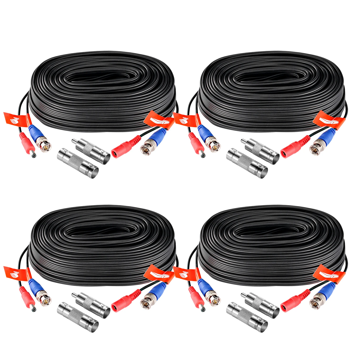 Кабель 2 в 1, 4x60 футов для видео и питания 4 x Разъемы BNC-BNC 4 x Разъемы BNC-RCA