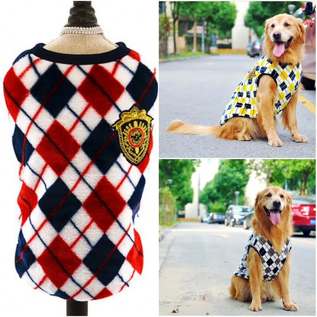 Осенне-зимний фланелевый мягкий жилет для собак Футболка для питомцев с бриллиантами одежда для домашних животных в британском стиле Одежда для питомцев Хаски Лабрадор ретривер большой размер для собак XL ~ 6XL