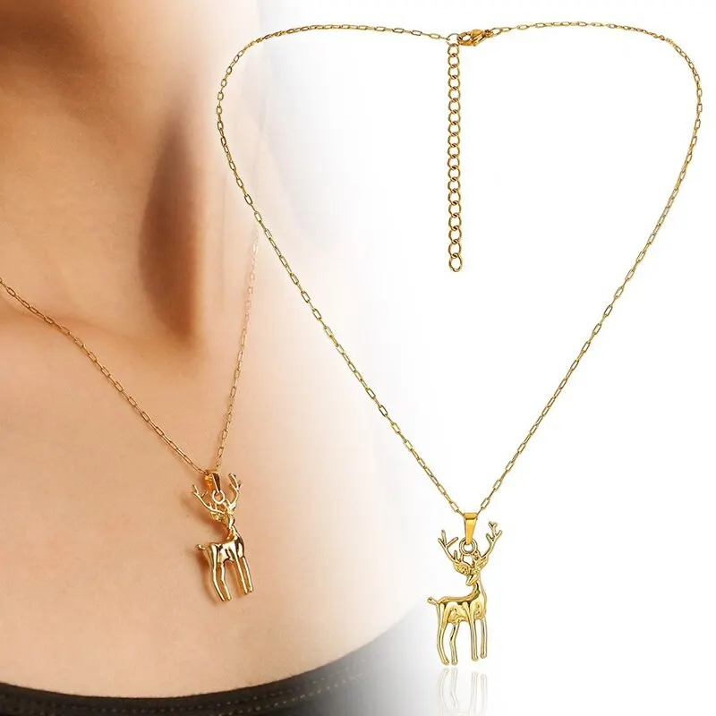 Новинка 2020, мини кулон с оленем, лося, ожерелье для женщин, ожерелье для ключицы, модная цепочка золотого цвета, рождественские украшения, подарок для женщинUS $1,94