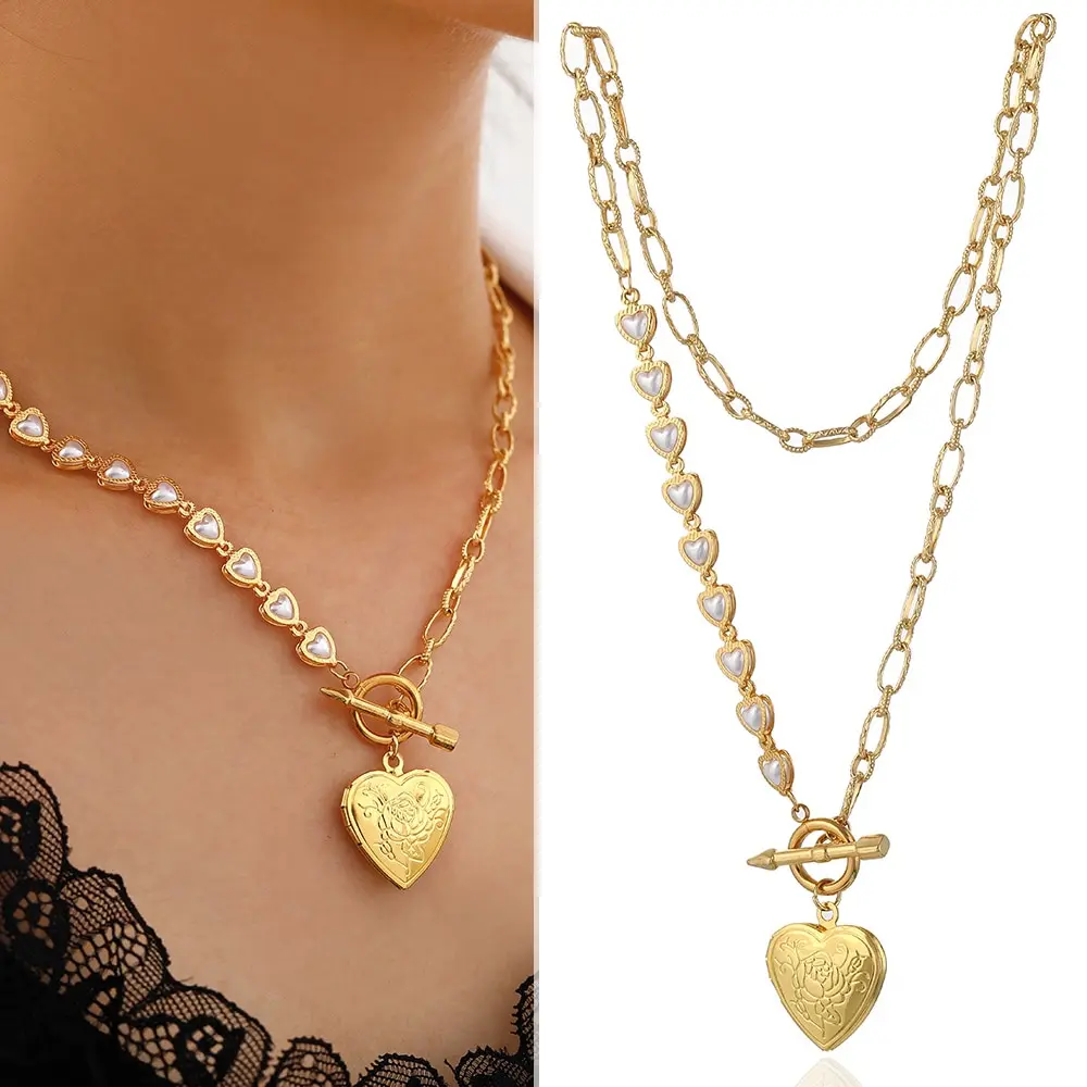 Женское ожерелье с подвеской в виде сердца, колье из нержавеющей стали золотого цвета, колье из искусственного жемчуга, украшение для банкета, подарокUS $3,25