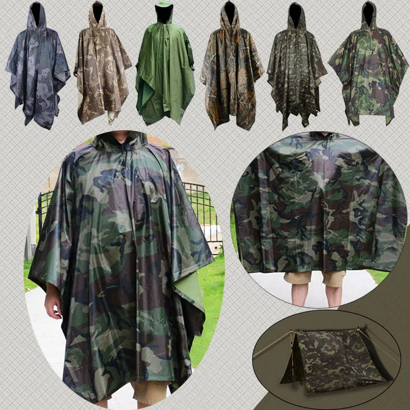 Многофункциональный военно-Водонепроницаемый камуфляж Плащ дождевик Для мужчин Для женщин Для мужчин пончо от дождя для кемпинга Рыбная ловля мотоцикл E2S