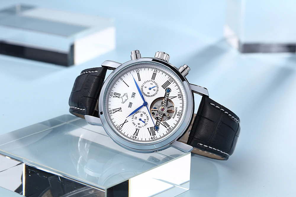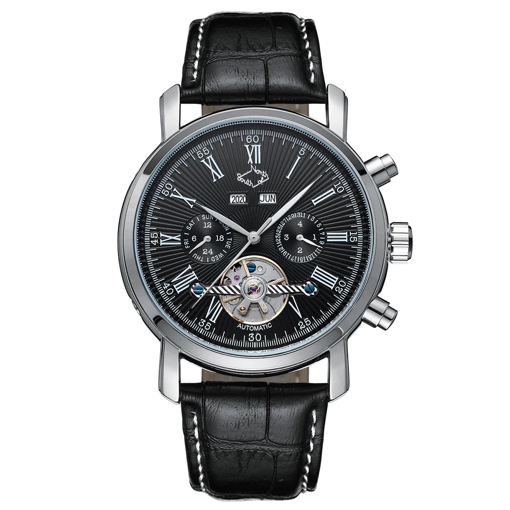 Основные характеристики:1. Отображение года и месяца.2. Отображение даты и дня.3. Клетка турбийона в шесть часов.4. Автоматическое механическое движение внутри.5. Кожаный ремешок высокого качества.Характеристики:Чехол диаметр: 4,3 см (1,7 ")Чехол Толщина: 1,1 см (0,43 ")Длина ремешка: 19,0 см (7,5 ")Ширина ремешка: 2,4 см (0,9 ")Тип ковша: автоматическое механическое движениеМатериал ремешка: кожаПосылка включает в себя:-Часы-1 шт.-Руководство по эксплуатации-1 шт.-1 x Подарочная коробка