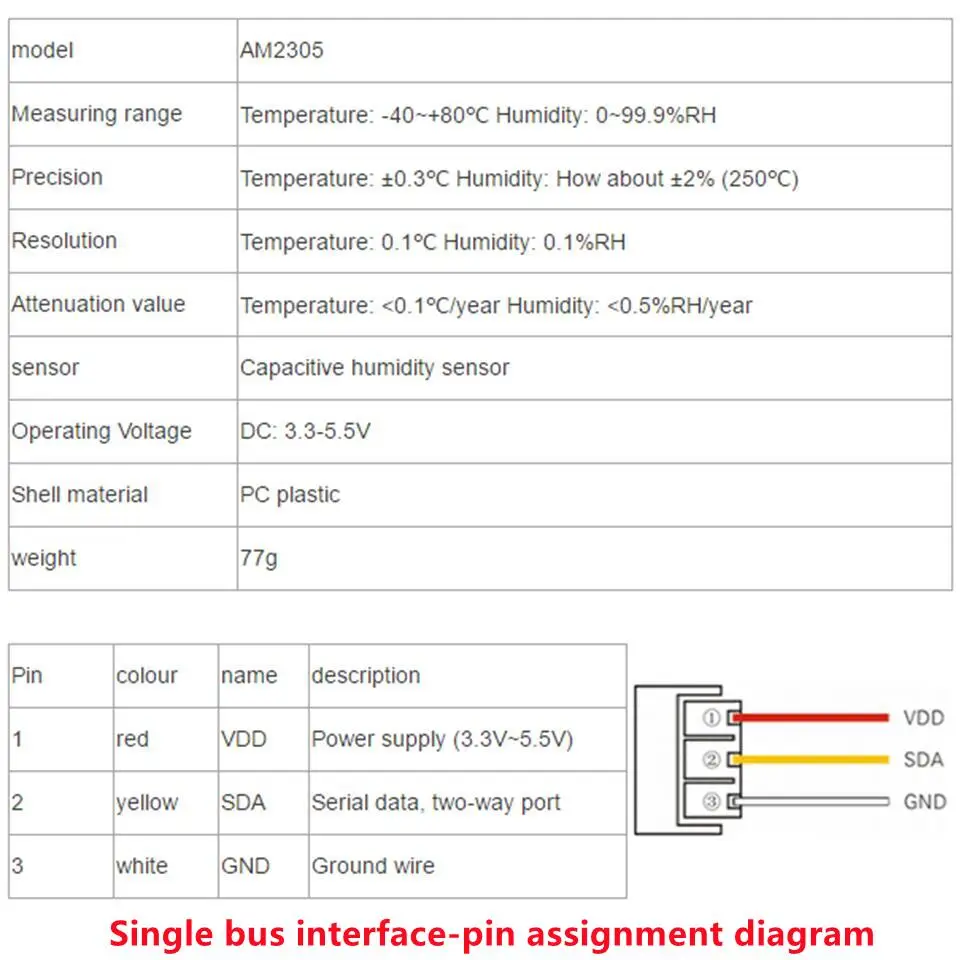 Теория: регулятор температурыНомер модели: AM2305Точность измерения: -40 ~ 120 ° cТочность: ± 0,3 ° cРазрешение: 0,1Диапазон: 0-100% RHОписание товараХарактеристика:Измерение относительной влажности и температуры, калибровка, цифровой выходОтличная долгосрочная стабильностьНикаких дополнительных компонентовПередача сигнала на большие расстоянияУльтра-низкая мощность4 pin-код установкиПолностью взаимозаменяемыйПрименение:1. HVAC2. Испытательное и инспекционное оборудование3. Авто4. Регистратор данных5. Потребительские товары6. Автоматическое управление7. Погодная станция8. Приборы9. И регулятор влажности10. МедицинскийПосылка включает в себя:1 x AM2305 цифровой датчик температуры и влажности AM2305 Новый