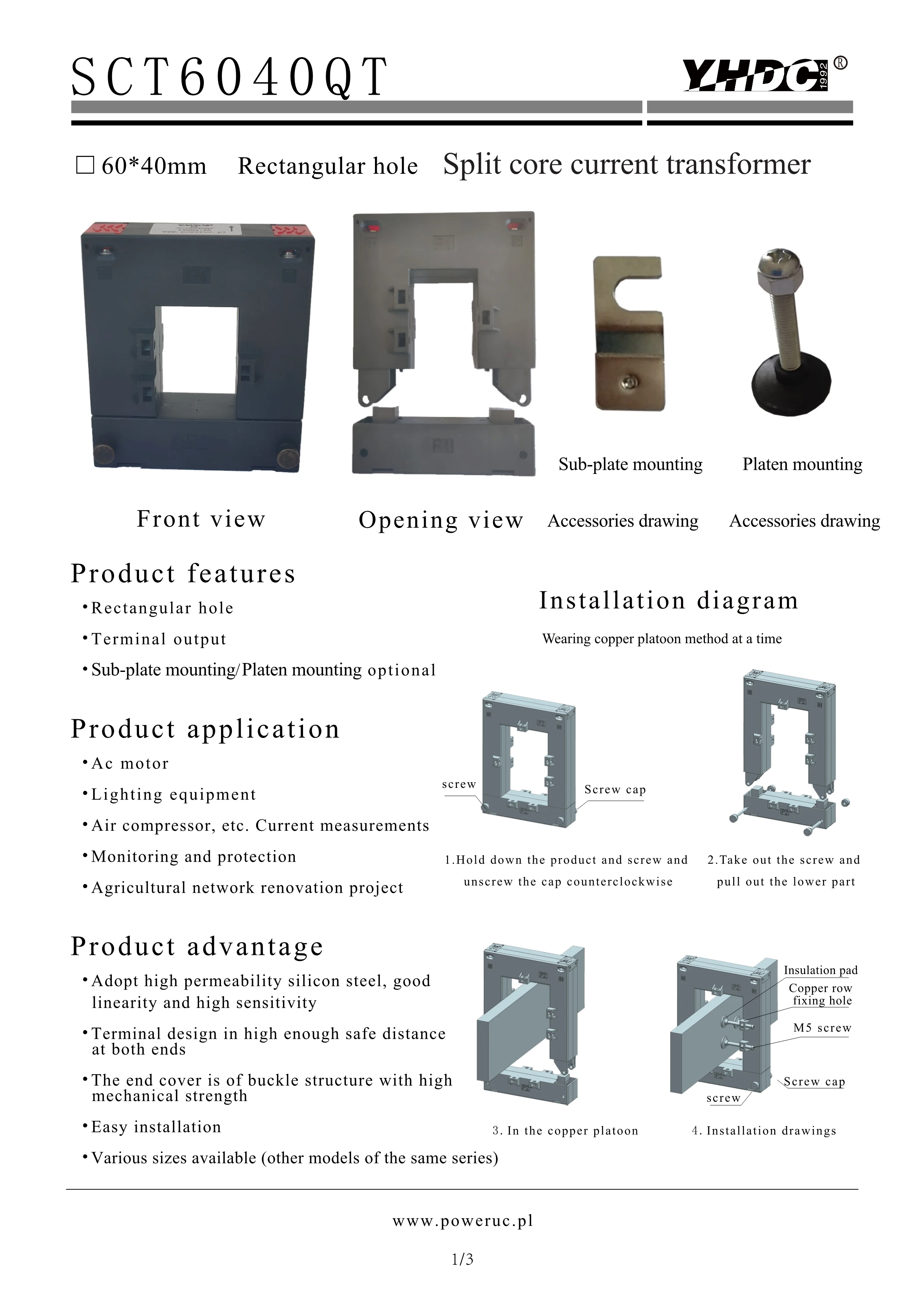 Сплит Ядро тока трансформатор, модель: SCT6040QT