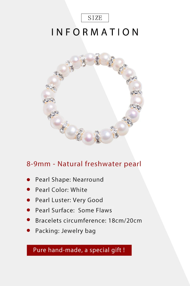 Бренд: ASHIQI Размер жемчуга: 8-9 мм Форма жемчуга: полукруглая Цвет жемчуга: белый Жемчужный Блеск: очень хорошо Поверхность жемчуга: некоторые изъяны Окружность браслета: 18 см/20 см Упаковка: сумка для ювелирных изделий Ручная работа, особый подарок!