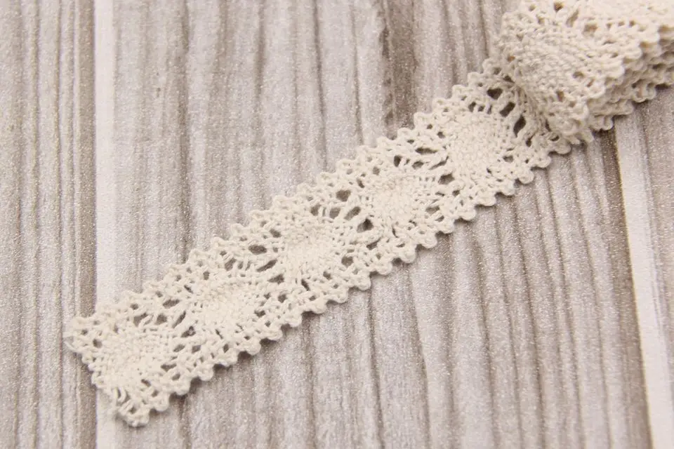 Новинка 4 м/лот, хлопковый материал с кружевной лентой для шитья дома, 5 размеров, бежевый цвет, ручная работа