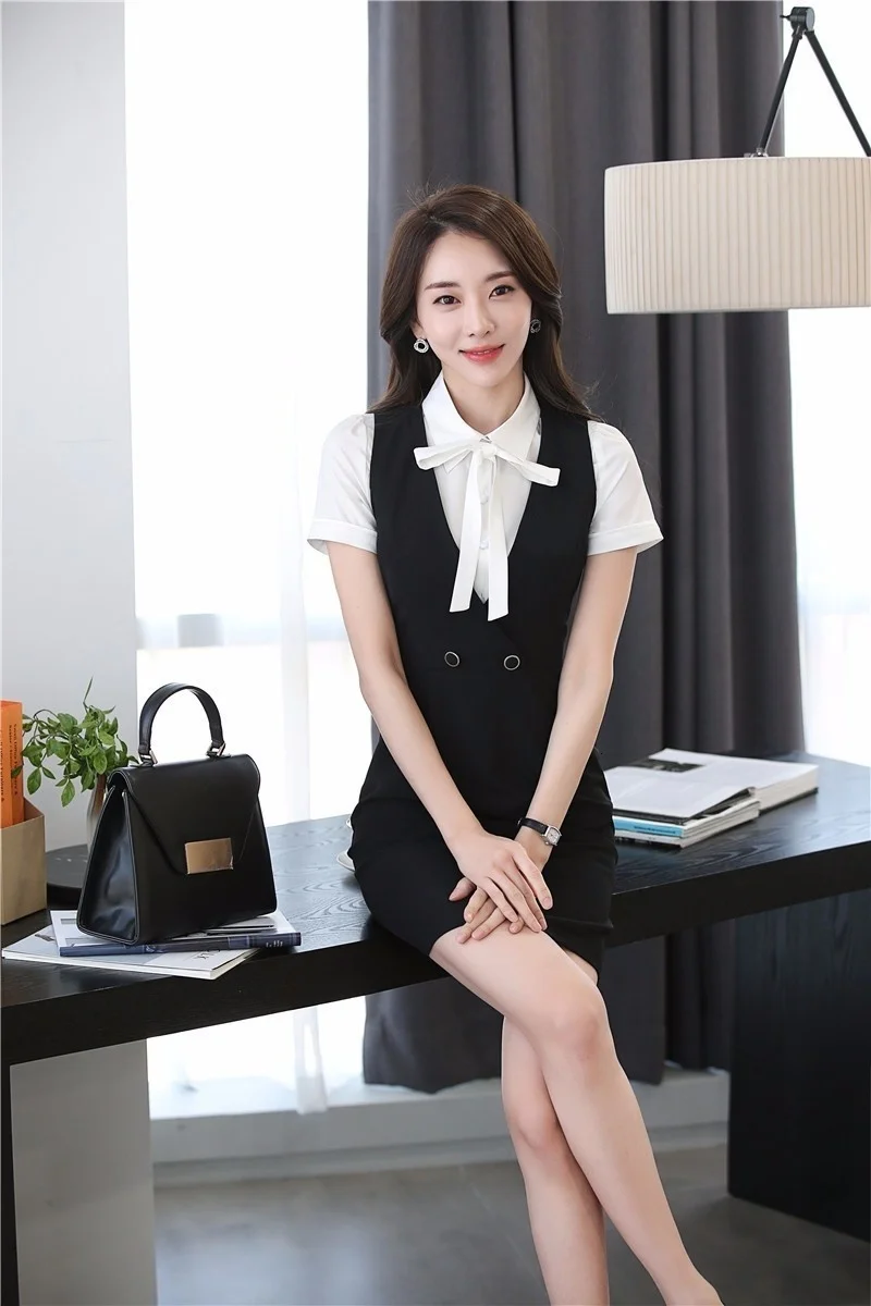 100% Новый бренд Модная тонкая Женская рабочая одежда Деловой женский костюм(Блузка + платье) Цвет: красный, черный, темно-синий Материал: Блейзер + хлопок Китайский Размер: S, M, L, XL, XXL,XXXL