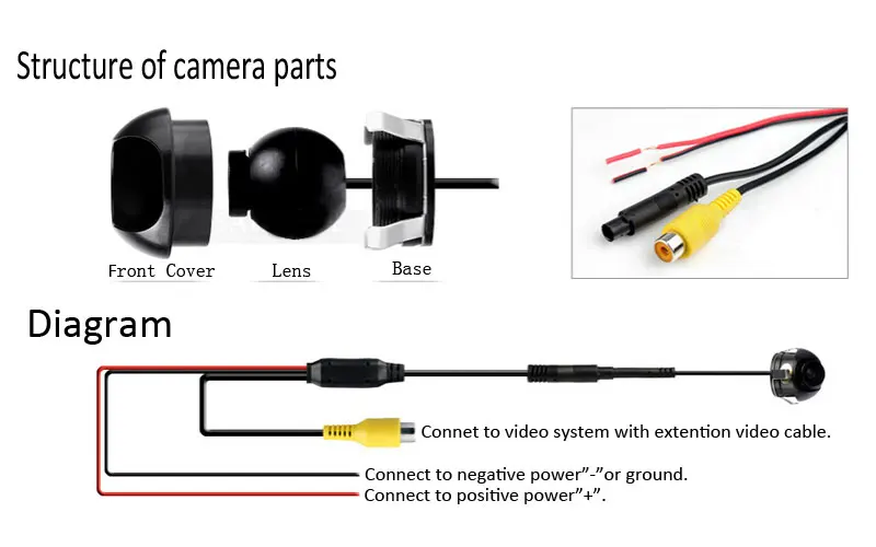 Датчики изображения Чип ccd (по умолчанию) Чип sonyccd (нет) ТВ-система NTSC как defaulr,PAL нужно отметить ваш заказ. Пиксели 720*480 728*582 Угол обзора Около 120 градусов Около 150 градусов Объектив F = 1,6 F = 1,8 Ночное видение Да Лучше, чем ccd Источник питания 12 В постоянного тока 12 В постоянного тока AGC Авто Авто BLC Авто Авто IP rate IP67-68 IP67-68