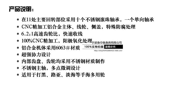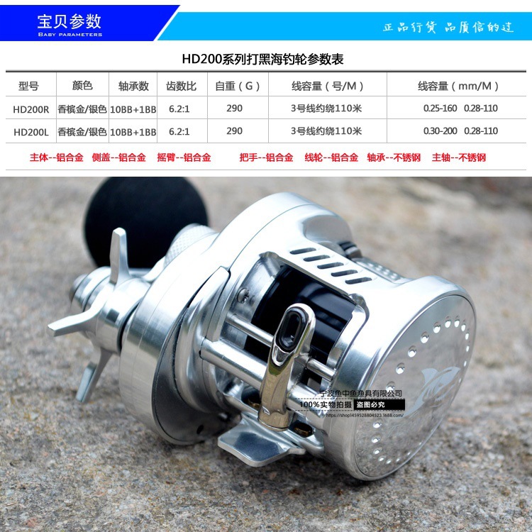Глобальный запуск, в небольших количествах, быстро сломался! Полностью металлический барабан, один вырез, полностью алюминиевый толстый корпус, подшипники из нержавеющей стали, что позволяет бороться с большой вещью. Специализируется на дизайне, производстве, экспорте за границу в течение многих лет опыта работы, и, наконец, для отечественных рыбаков, привнесла удовольствие от рыбалки, не только хорошая производительность и низкая цена. Компактный дизайн, компактный, особенно для морской рыбалки, портативность. Прочность алюминиевой катушки. Большая рукоятка, удобная круглая ручка, быстро и легко встряхните ее, без конструкции кабельного устройства, делает ее слишком сильной. Потому что эта катушка расходуется. Все заказы будут отправлены FedEx/TOLL/UPS/TNT/HK DHL/EMS /e-EMS/Почта Китая Пожалуйста, оставьте мне сообщение, в котором укажите, какой вариант доставки вы предпочитаете, по умолчанию Почта Китая или e-EMS спасибо Модель 200R/L: 10BB + 1RB Передаточное отношение: 6,2: 1 линия ёмкость: 0,3 мм/110 м Вес: 290g тормозное усилие: 6 кг