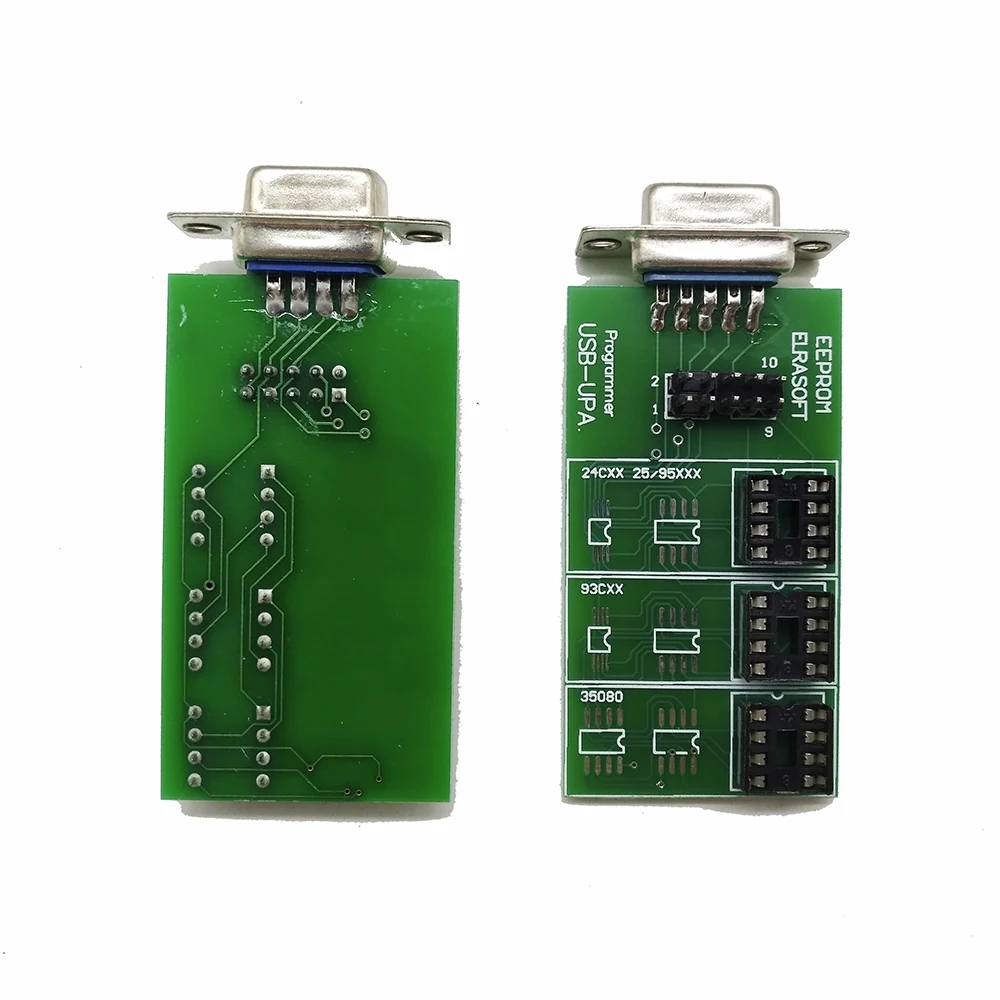 Просто подключите материнскую плату к программатору UPA напрямую или с помощью DB9 male / female Удлинительный кабель (1:1). Вставьте правильный ключ конфигурации в слот материнской платы и начните Программирование через ZIF или SOIC Socket. Вы также можете использовать прилагаемый DIL-10pin Плоский заголовок, поместите его в гнездо ZIF и подключите SOIC зажим или зажимы для использования ISP. Motorola MCU's Выберите адаптер, который вы хотите использовать, прикрепите плоский кабель к адаптеру (PIN1 всегда указан, Как на кабеле, так и на адаптере), а также на разъем ISP для основной платы 10pin. Выберите источник питания VCC с помощью перемычки на материнской плате рядом с разъемом ISP (On = target поставляется из upa, off = target получил собственную поставку). Вставьте адаптер поверх пайки PLCC MCU на целевой PCB. (Без пайки, без разборки, без подсчета контактов, экономит много Время и хлопот, и давайте вам сделать вашу работу быстрее, точнее и проще)