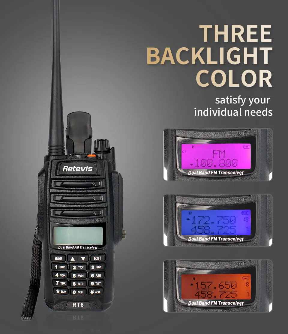 Retevis RT6-это новейший разработанный двойной период водонепроницаемого и пылезащитного двухстороннего радио, IP67 пыли и водонепроницаемого сопротивления двустороннего радио. Радио хорошо работает под одним метром воды в течение 30 минут. Таким образом, он обеспечивает надежность продукта во влажной среде.