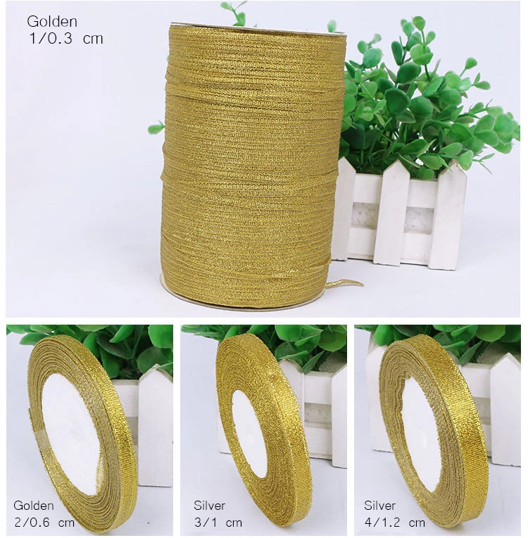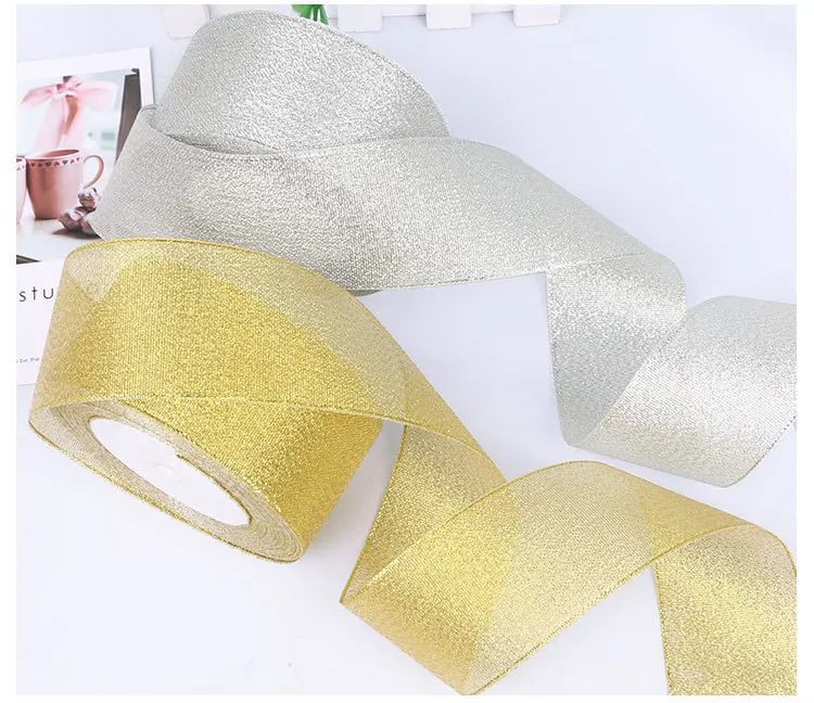 25 ярдов/объем золотой лук пояс лента для подарочной упаковки золотой серебряный блеск Рождественское украшение лента Сделай Сам органза лента