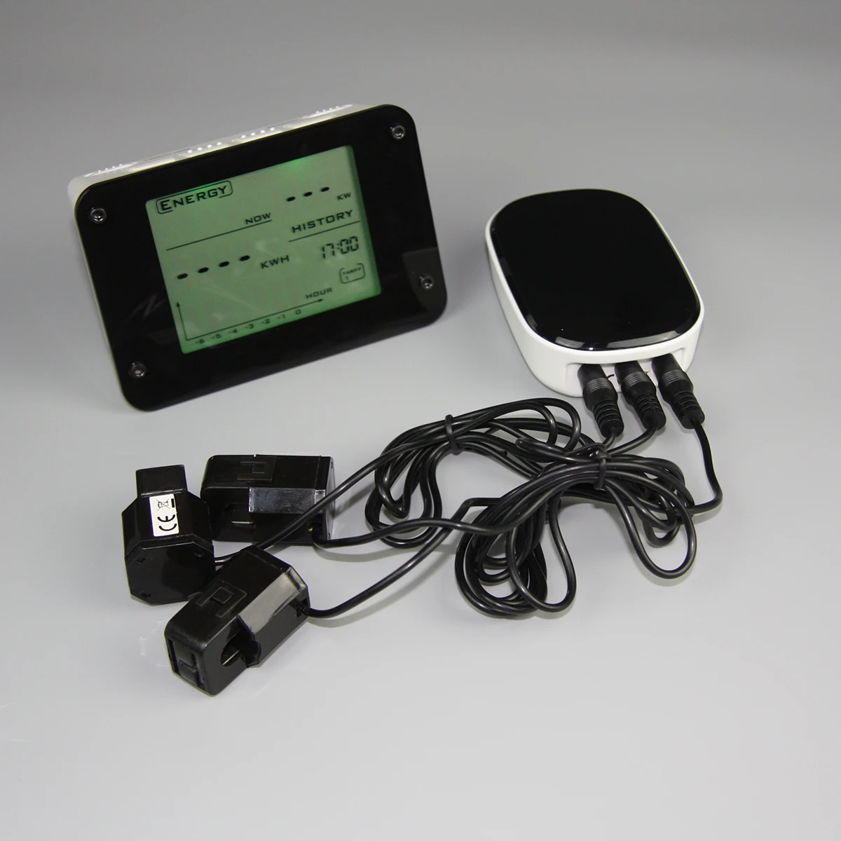 Отображение стоимости в реальном времени/выбросов ПГ/энергопотребления Состоит из внутреннего дисплея и передатчика-компаньона и датчика: --- Датчик тока: просто закрепите на пожарном проводе, чтобы измерить ток электромагнитной индукцией. --- Передатчик: передача данных от датчика тока к монитору с беспроводным сигналом --- Монитор: Получайте данные в режиме реального времени от передатчика, отображайте читаемые параметры, такие как потребление электроэнергии, стоимость и график потребления. Просмотр данных за последние 7 часов, 7 дней, 7 недель и 24 месяца Графическая диаграмма потребления электроэнергии, стоимости и CO2 Функция времени и календаря Звуковой сигнал для чрезмерного потребления электроэнергии (количество сигнала тревоги адаптируется). Действителен для одиночного и двойного тарифа Однофазный, двухфазный или трехфазный совместимый с системой Дальность передачи 433 МГц превышает 30 метров Отображение валют: фунт стерлингов, $, евро Объем хранения данных: 2 года Дисплей с подсветкой Размеры: 120x80x40 мм для приемника; 102x64x28 мм для передатчика. Жизненный цикл батареи для приемника: один год. Для передатчика 2 года. Вход адаптера постоянного тока (опционально)