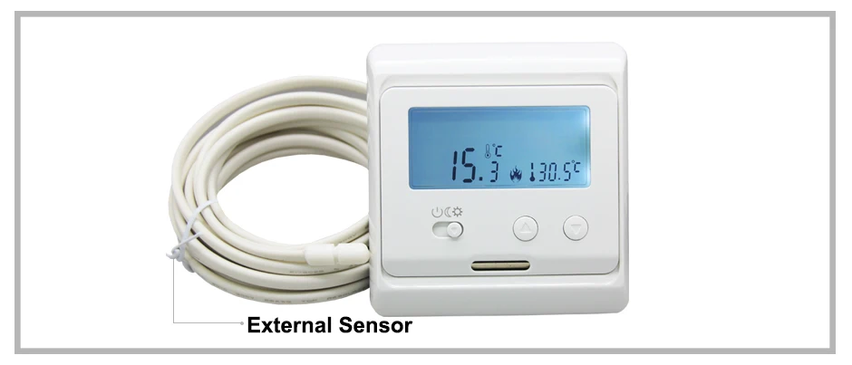 Напряжение: 220 В/230 В Потребляемая мощность: 2 Вт Диапазон настройки: 5 Цельсия ~ 35 Цельсия (можно регулировать до 5-90 Цельсия) Внешнее ограничение: 5 Цельсия ~ 60 Цельсия (заводская настройка: 35 Цельсия) Датчик: NTC внутренний/внешний датчик Переключатель дифференциальный: 0,5 Цельсия ~ 10 Цельсия регулируемый, заводская установка 1/-1 Цельсия Температура окружающей среды:-5 Цельсия ~ 50 Цельсия Защитный корпус: IP20 Материал корпуса: противовоспламеняющийся ПК