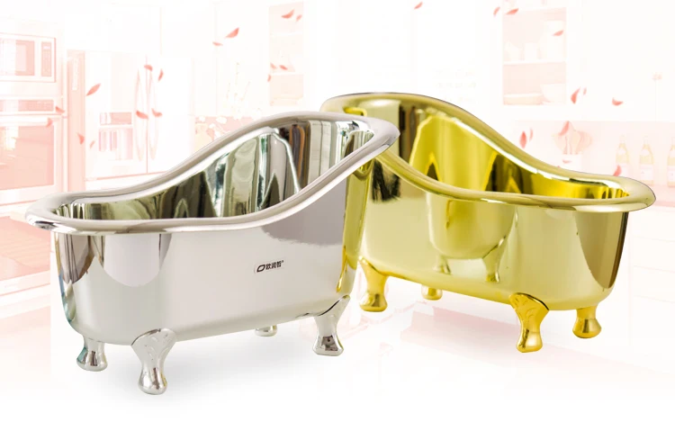 Ванная комната коробка для хранения Корзина ванна Форма Серебряный позолоченный Spa миниатюрные Массажная расческа косметика для хранения ювелирных...