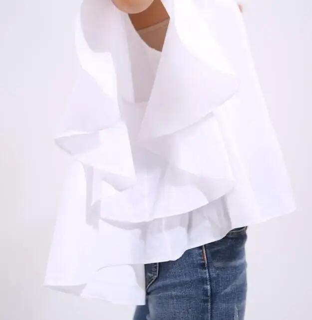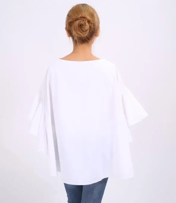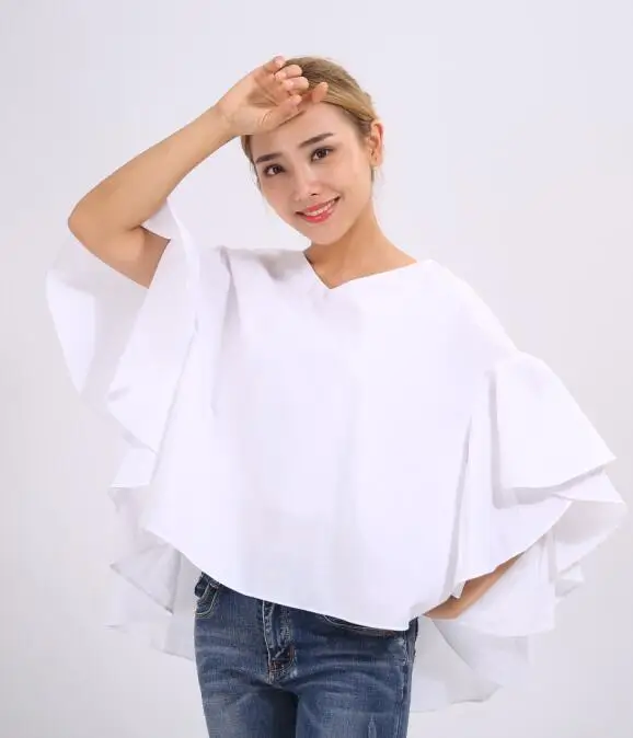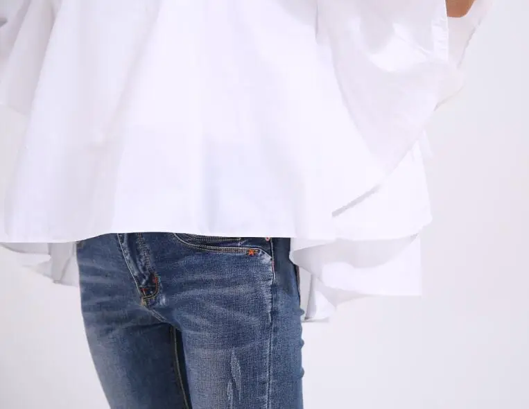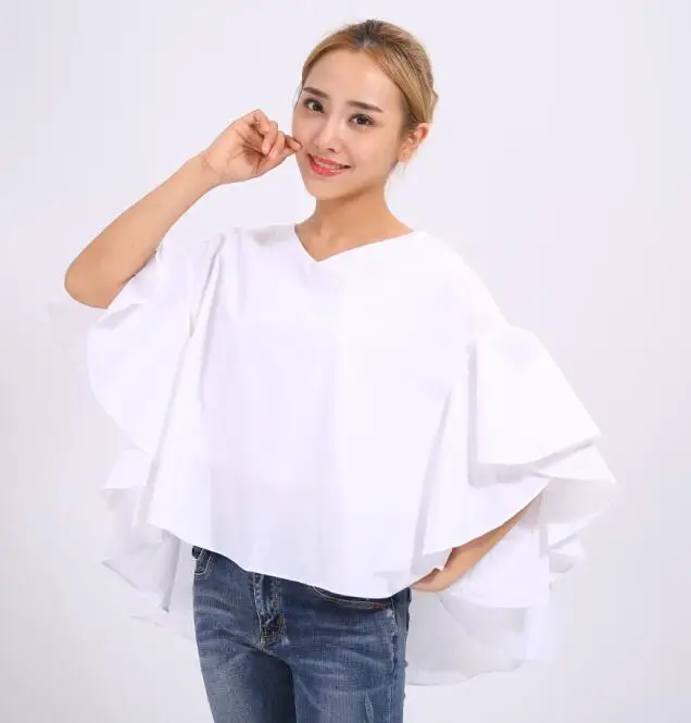 GETSRING 2017 новые весенние женские белые рубашки с рюшами блузки v-образный вырез рукав летучая мышь хлопок большой размер Дамский Топ