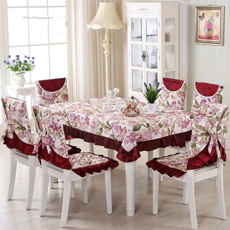 E = 1 скатерть Размером 150x150 см + 6 чехлов для сидений на стуле + 6 чехлов на спинку стула