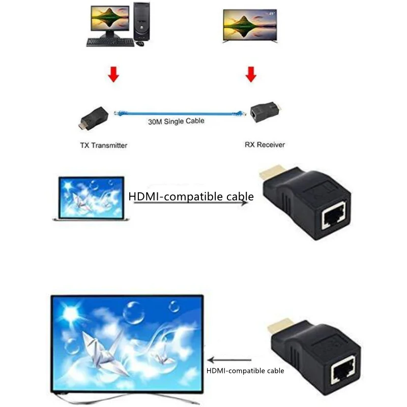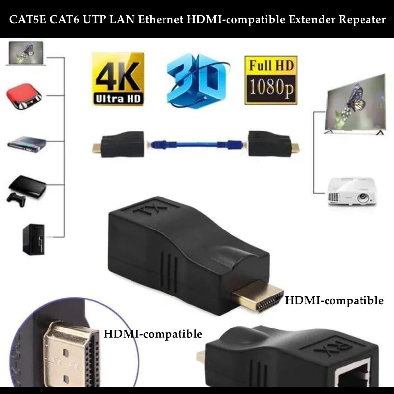 CAT5E CAT6 UTP LAN Ethernet HD удлинитель Ретранслятор 1080P жесткий пластик HDMI-Совместимость с RJ45 сетевой кабель удлинитель для HDTV