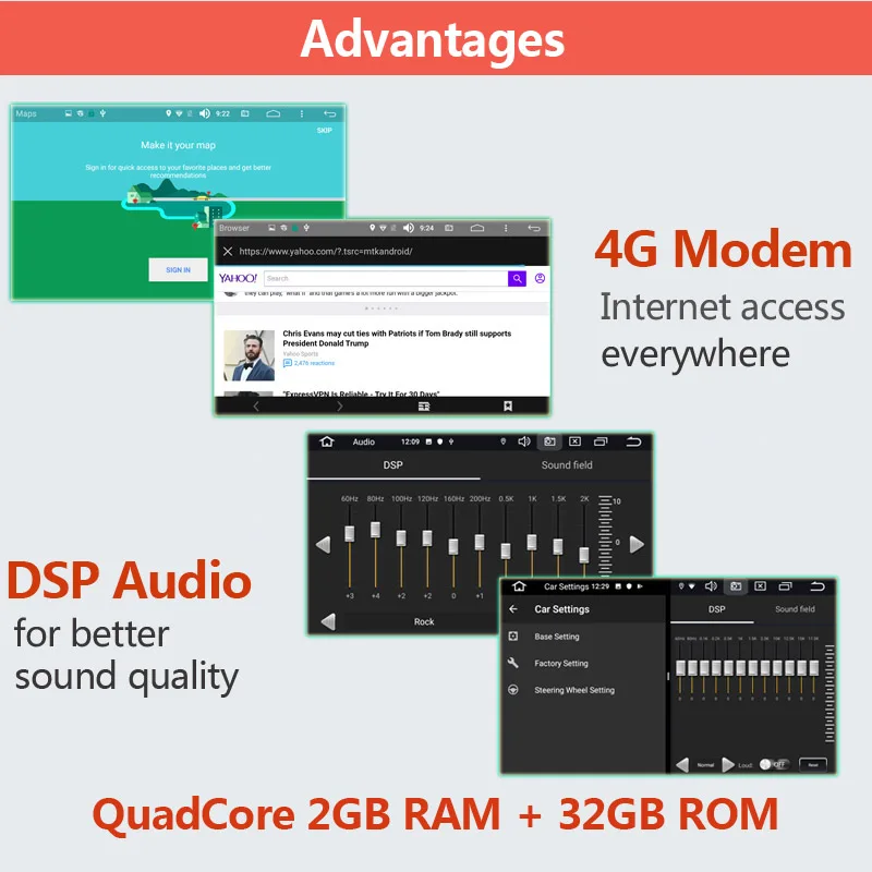 Основные характеристики ---> Новая ОС ANDROID10 ---> Четырехъядерный процессор Cortex A7 CPU + 2GB RAM DD3 + 32GB ROM + 4G Модем + 1024*600, четырехъядерный, ---> WIFI ссылка интернет-доступ. ---> Готовый Встроенный 4G 3G модем, вам просто нужно добавить подходящую sim-карту для включения доступа в Интернет ---> Wi-Fi ссылка от вашего смартфона точка доступа маршрутизатор для доступа в Интернет также. ---> Поддержка стандарта 12 полос эквалайзера. ---> Поддержка управления рулем (Мультимедийные кнопки) и с дополнительным интерфейсом USB ---> Gps-навигация офлайн карта (Sygic или i-GO или Navitel) + сервис онлайн-отображения Google. ---> Версия Bluetooth 4,0, поддержка громкой связи, безопасная ваша жизнь вождения, ---> A2DP-Наслаждайтесь потоком музыки со смартфона через Bluetooth, поддерживает iOS и Android OS. ---> Google Play маркет готов, бесплатно скачать приложения и получить удовольствие. Как waze,facebook,twitter,youtube и т. Д.