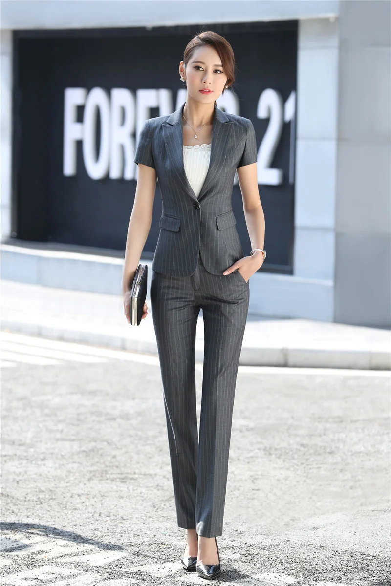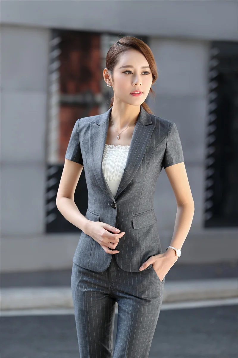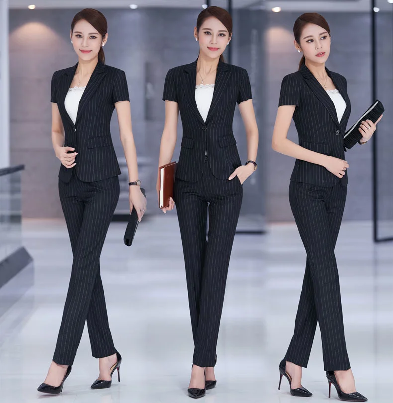 Модные женские рабочие костюмы(Блейзер + брюки) Элегантный, формальный стиль для офисных дам Цвет блейзера: черный, серый, темно-синий Цвет брюк: черный, серый, темно-синий Китайский Размер: S M L XL XXL XXXL Материал: блейзер