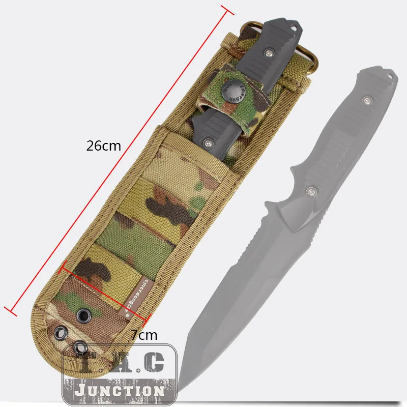 1. Материал: нейлоновая ткань высокой плотности. 2. Цвет: черный (BK) /Мультикам (MC) /Койот коричневый (CB) 3. Посылка: тактический Чехол-футляр для ножей с фиксированным лезвием MOLLE * 1. 4. Примечание: модель ножа на картинке не включена. Только для изображения.