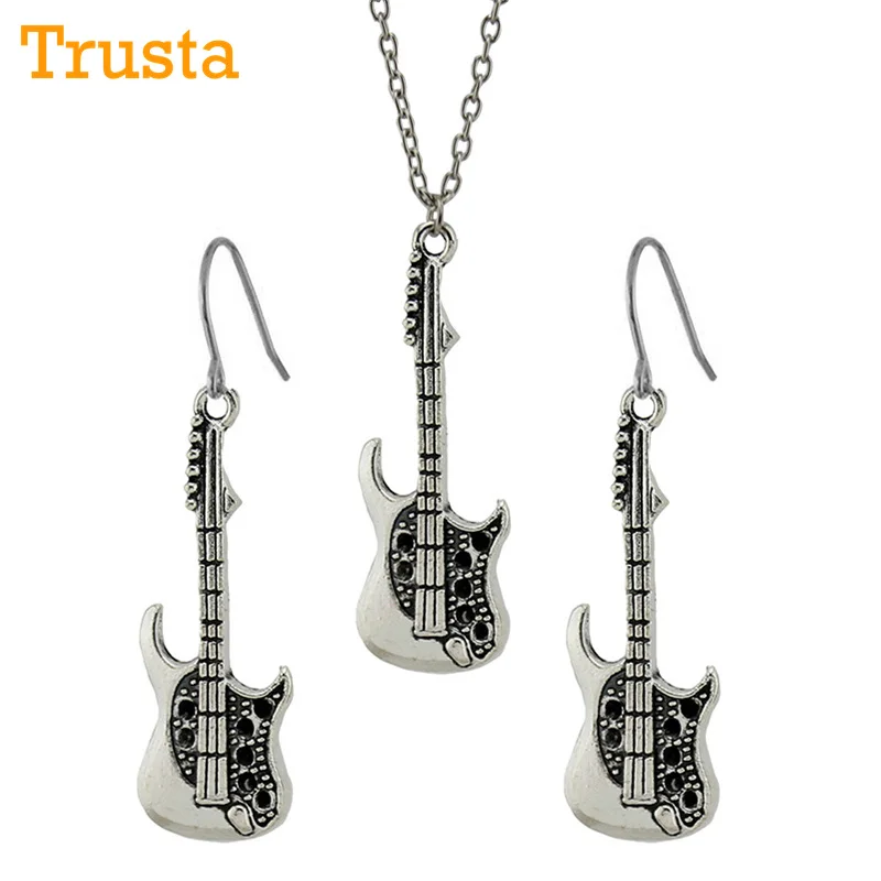 Trusta модный винтажный Серебряный тон Очаровательная гитара женский ювелирный набор серьги короткое ожерелье с подвеской 18 "подарок для девочек DY68